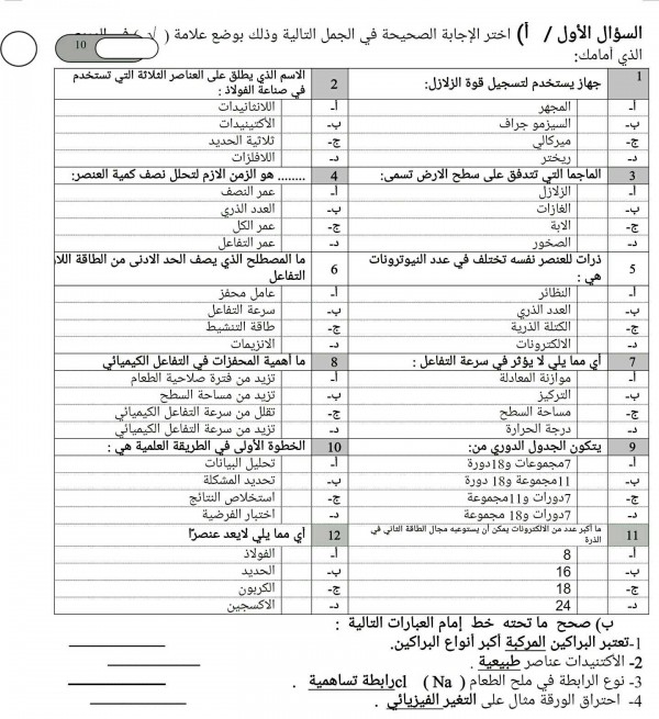 نماذج اسئلة اختبار علوم ثاني متوسط الفصل الاول نهائي 1441 مجتمع الحلول