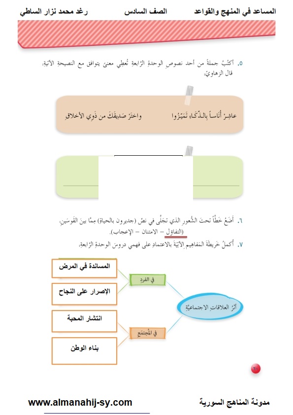 نوطة وحل كتاب اللغة العربية للصف الخامس ـ سوريا Language Fifth Grade Math