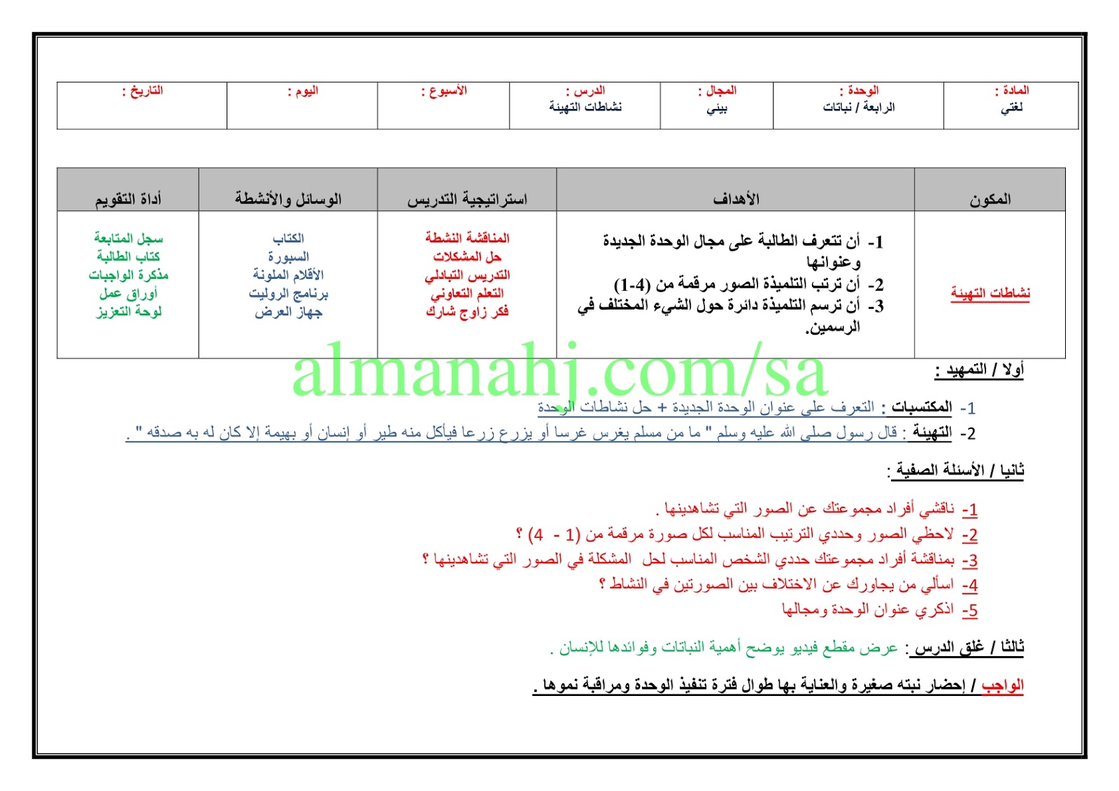 تحضير لغتي الوحدة الرابعة الصف الثاني لغة عربية الفصل الثاني المناهج السعودية