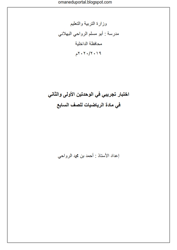 اختبار تجريبي في الوحدة الاولي والثانية رياضيات للصف السابع الفصل الاول 2019 2020 منهج كامبردج