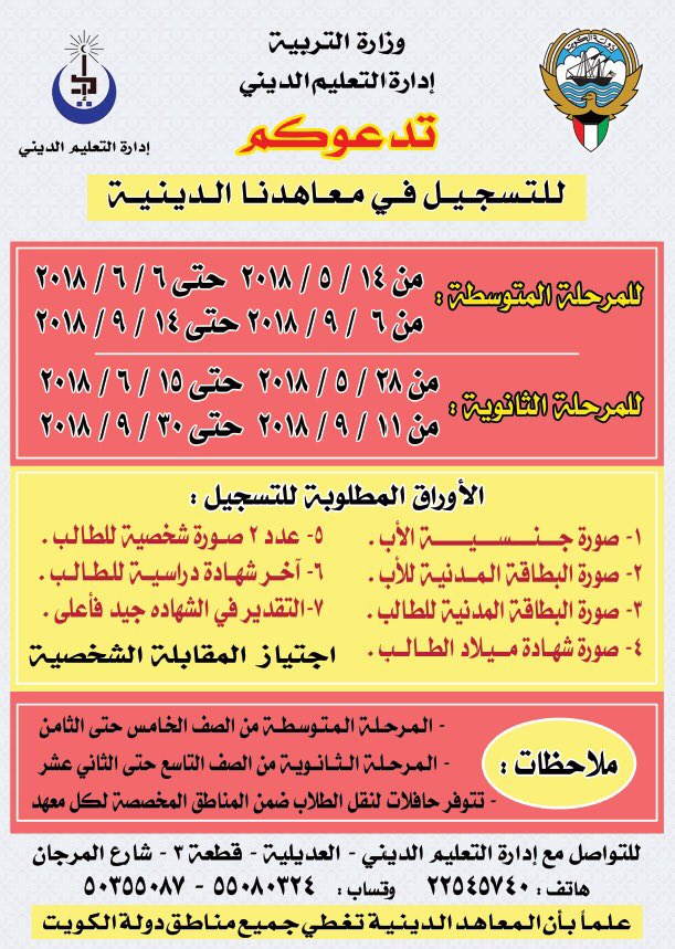 معلم نت خلك في البيت On Twitter إدارة التعليم الديني تعلن عن مواعيد تسجيل المتعلمين في المعاهد الدينية